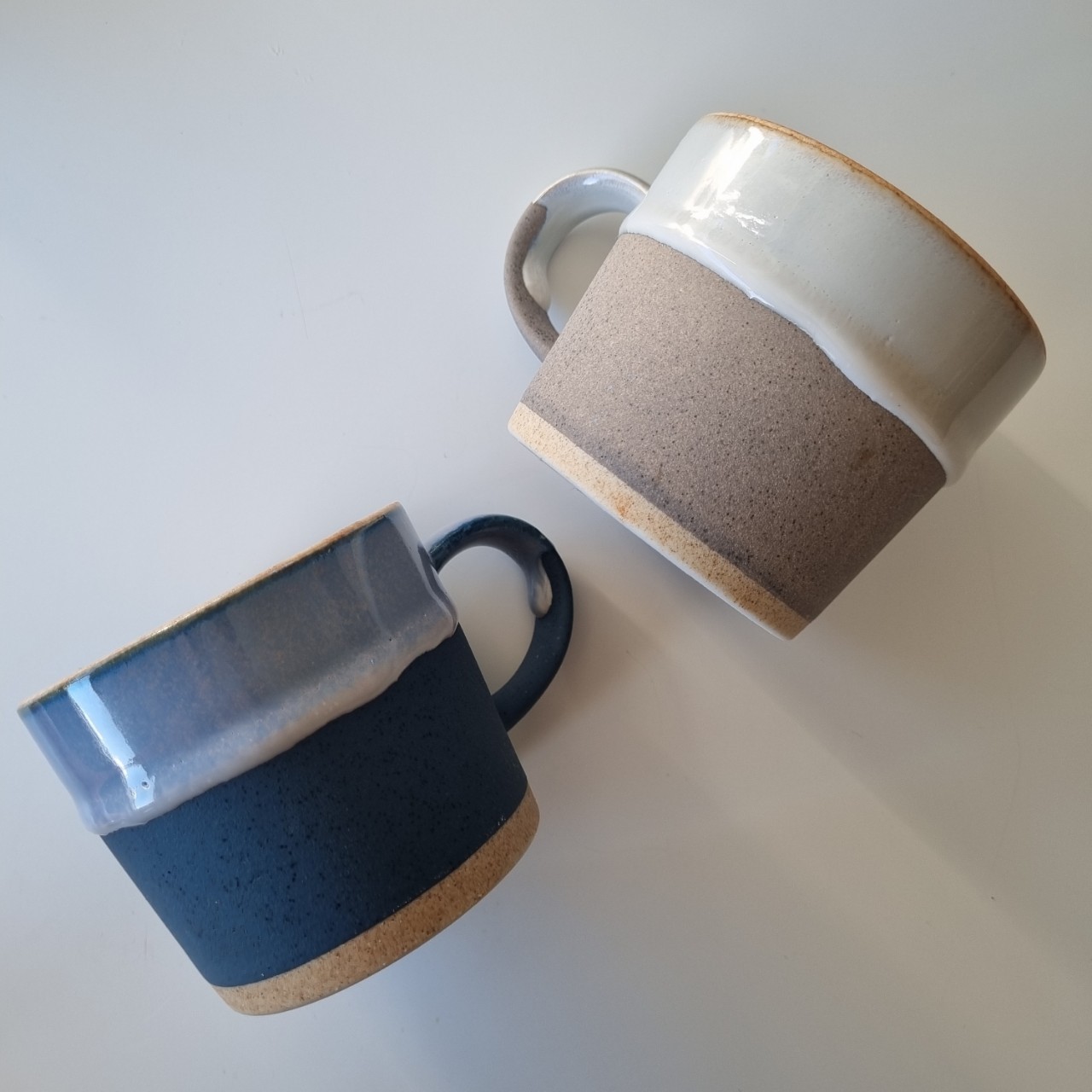 Introducing a collection of mugs, each unique in its own way, with dripping and pooling glaze.